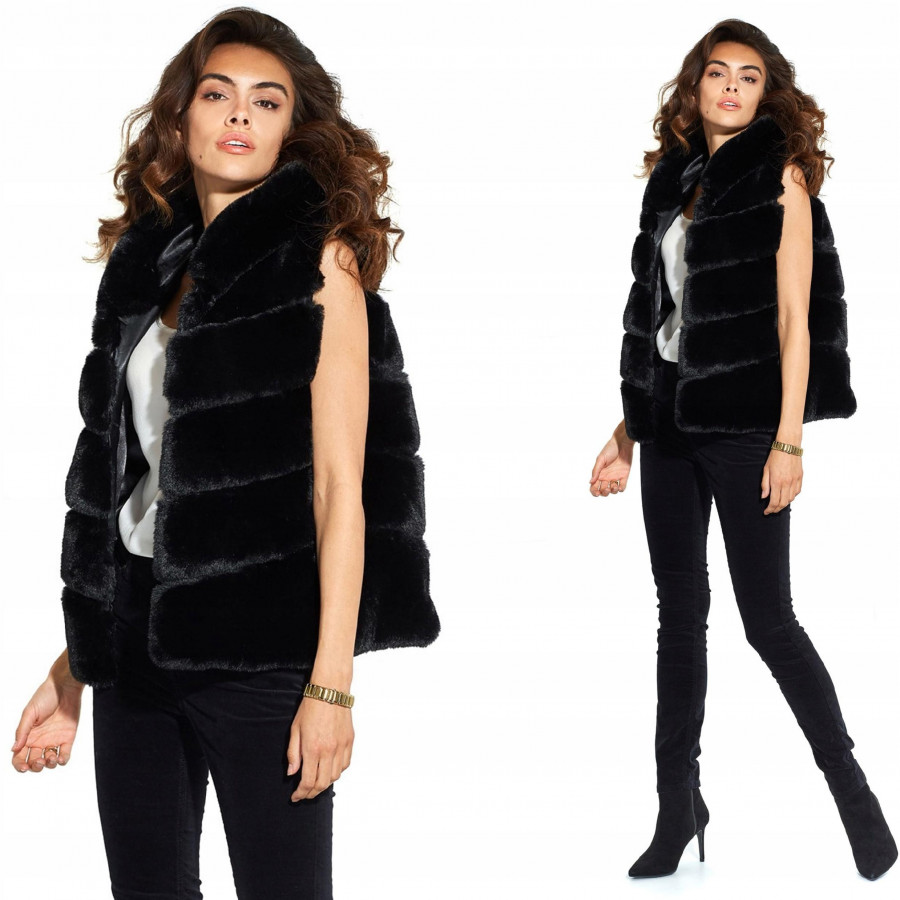 Styliści polecają noszenie kamizelek futrzanych na kurtki ze skóry.