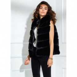 Uszyta na przemian ze sztucznego, przystrzyżonego futerka królika oraz eko skóry.