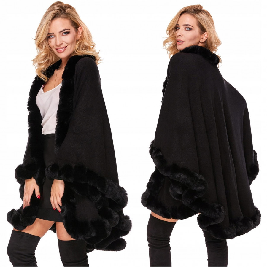 Brzegi poncza wykończone są przeplatanym sztucznym futerkiem.