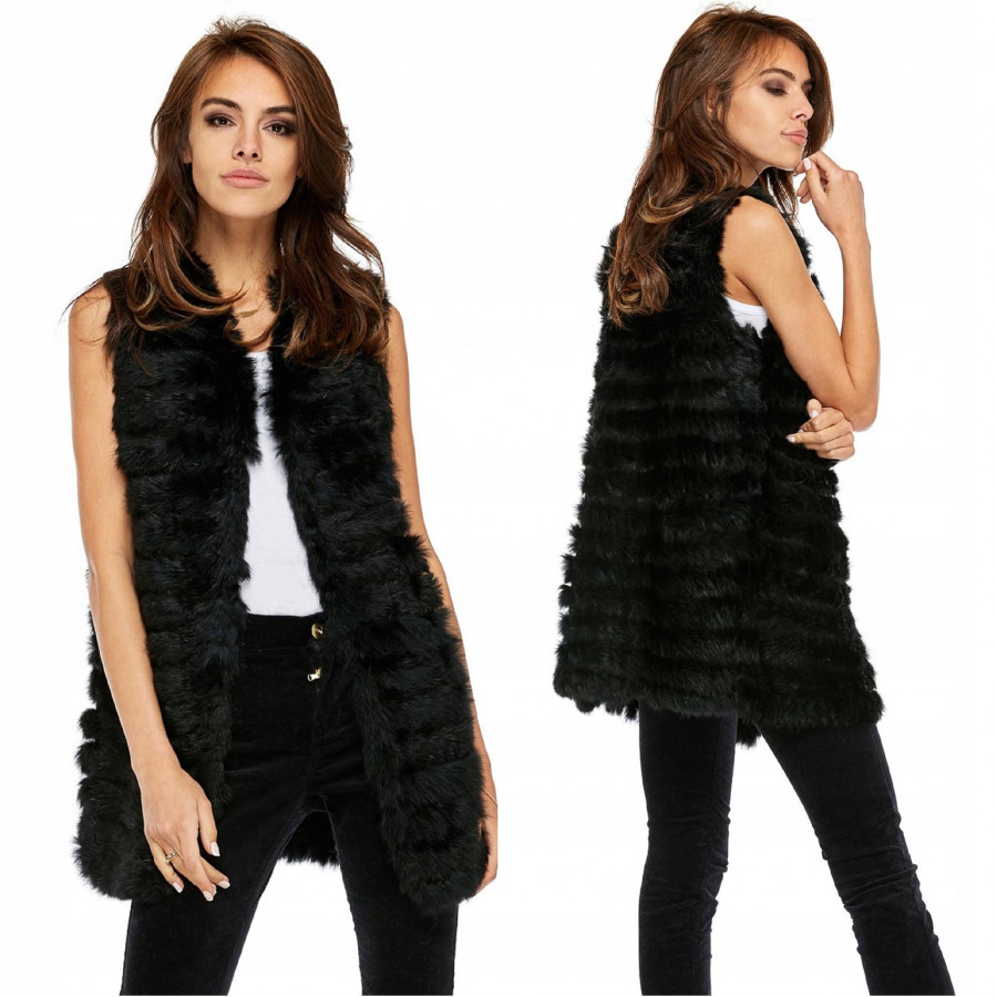 Uszyta z dzianiny, w którą zostało wplecione naturalne futro z królika,