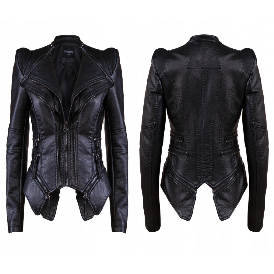 Lekko podniesione ramiona dodają elegancji, a liczne suwaki i przeszycia drapieżnego charakteru.